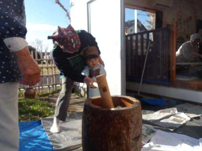 今年も地域のおじいちゃんと一緒におもちつきをしました☆